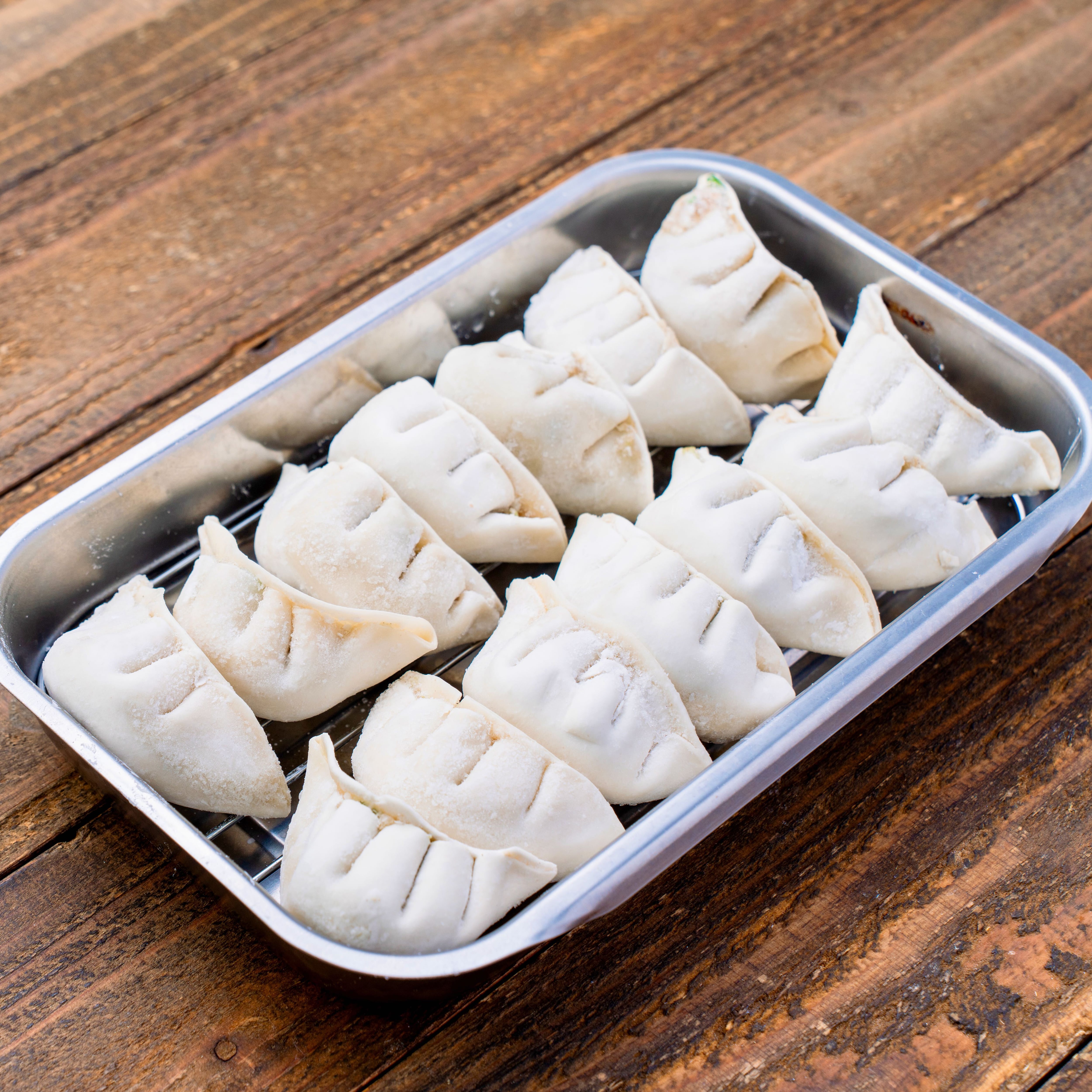 【原材料】具(キャベツ、豚肉、鶏肉、にら、生姜、にんにく、砂糖、アミノ酸、胡椒、塩)皮(小麦粉、塩、植物油)